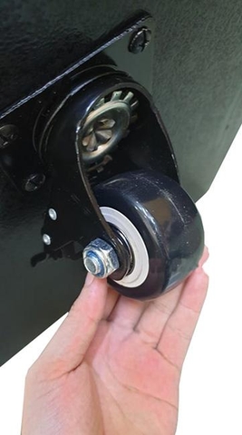 Bánh xe lớn được chế tạo từ lớp vỏ cao su cùng chất liệu kim loại cao cấp có khả năng chống mài mòn cực kỳ tốt khi tiếp xúc thường xuyên với mặt đất hay mặt bê tông. Càng bánh xe làm từ thép không gỉ dày dặn, chịu lực tốt nên đảm bảo độ bền khi sử dụng. Chân đế bánh xe có thể xoay chuyển 360 độ giúp di chuyển linh hoạt từ mọi hướng.