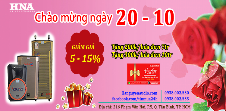 Đặc biệt: Giảm giá từ 5 – 15 % khi mua loa kẹo kéo tại cửa hàng (áp dụng cho những khách hàng nữ).