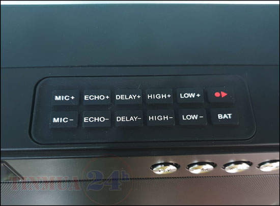 Người dùng có thể điều chỉnh âm thanh ở mặt trên của Boxt Q5 nhờ bộ phím chỉnh đơn giản như đầy đủ: Volume, Delay, Echo, Treble, Bass. Sử dụng nguồn 15V làm nguồn chính và có thể dùng trong tầm 3 – 4 tiếng. Loa kéo mini Boxt Q5 còn có tích hợp thêm một micro cùng tần số tương thích với loa để có thể tiện hơn trong việc vui chơi ca hát.