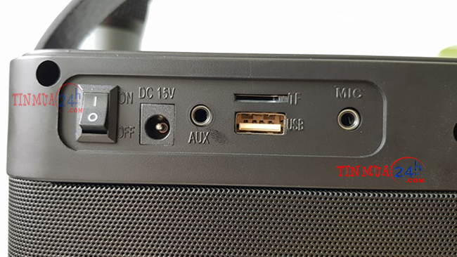 Mặt sau khá đơn giản với các cổng kết nối micro ( jack 3.5 ), kết nối USB/SD, kết nối sạc và cổng AUX vô cùng chuyên dụng và đa năng.