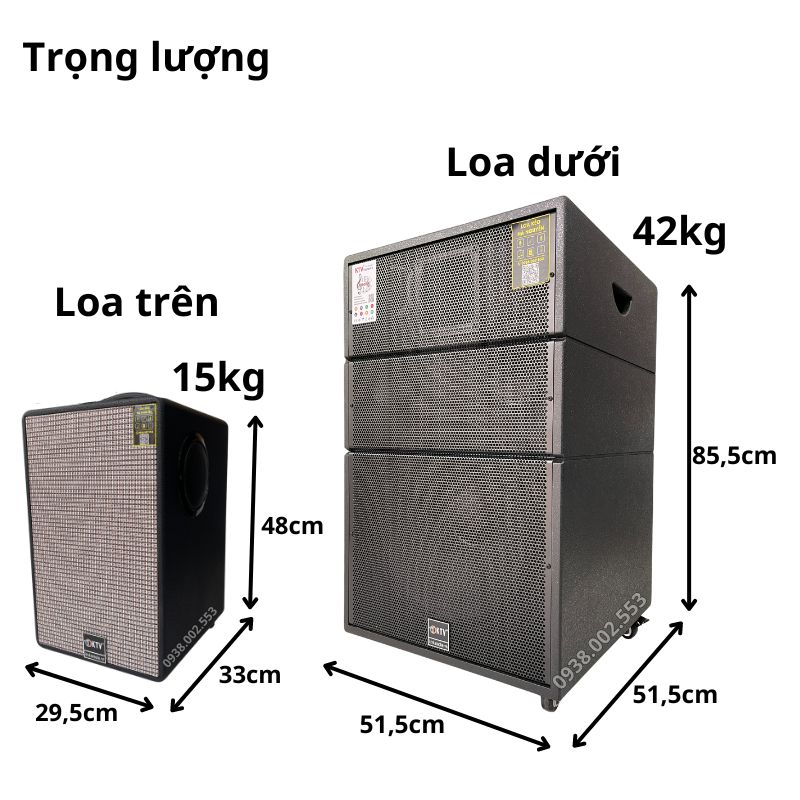 - Kích thước: Loa dưới 51,5 x 51,5 x 85,5 (DxCxS) cm