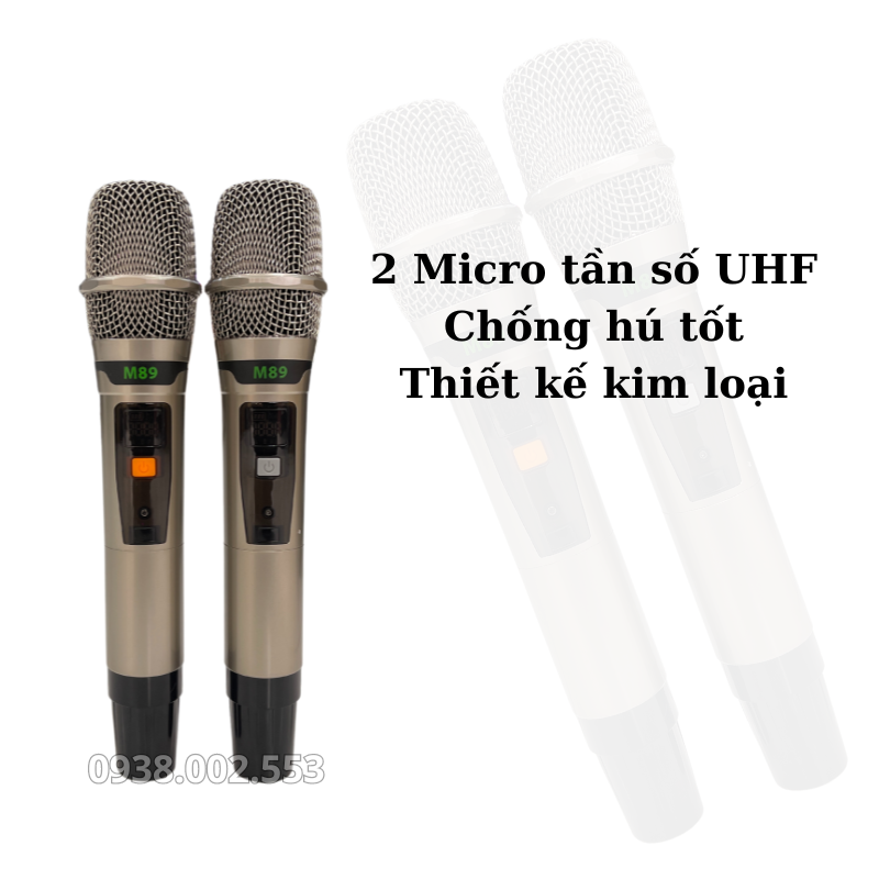 Micro của KTV 218-13 được thiết kế từ kim loại, ngoại hình không thay đổi so với các dòng loa trước nhưng vẫn sử dụng tần số UHF chống hú cực tốt và tạo cho cảm giác cầm nắm chắc tay. Micro được sơn màu bạc lấp lánh khá là đẹp. Micro sử dụng 1 nút để có thể điều chỉnh các thông số như "SET" lại tần số khi micro và loa mất kết nối và tăng/giảm độ nhạy của micro.
