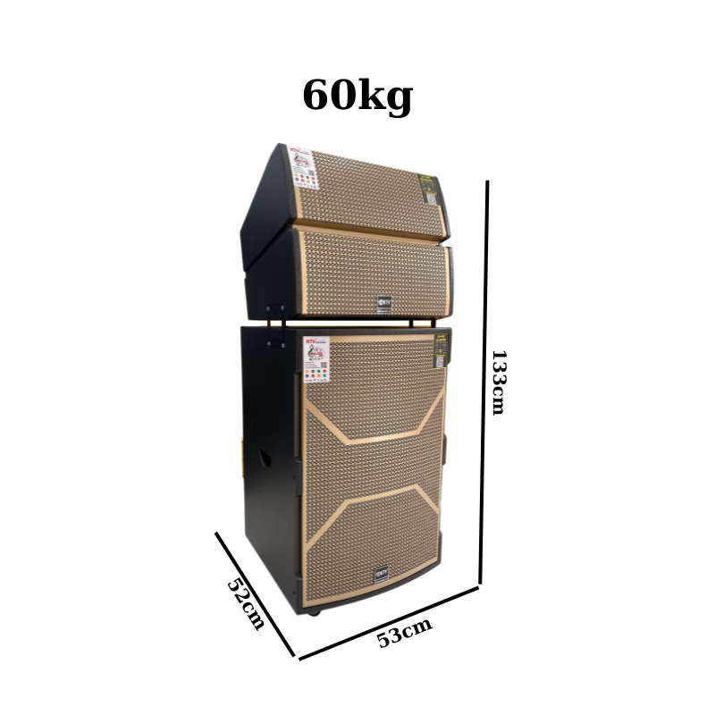 Trọng lượng của loa là 60kg khi đã láp rap và sử dụng loa, trọng lượng khi đóng đầy đủ trong thùng xốp sẽ là 65kg, 1 trọng lượng khá là nặng so với các dòng loa 5 tấc khác trên thị trường thì chỉ khoảng từ 40kg đến 50kg. Tuy nhiên việc di chuyển loa cũng khá là thuận tiện vì loa có 4 bánh xe to phía dưới loa và các tay nắm được thiết kế xung quanh loa.