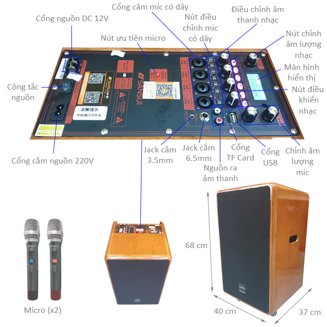 - Bình acquy kèm loa được bảo hành 6 tháng