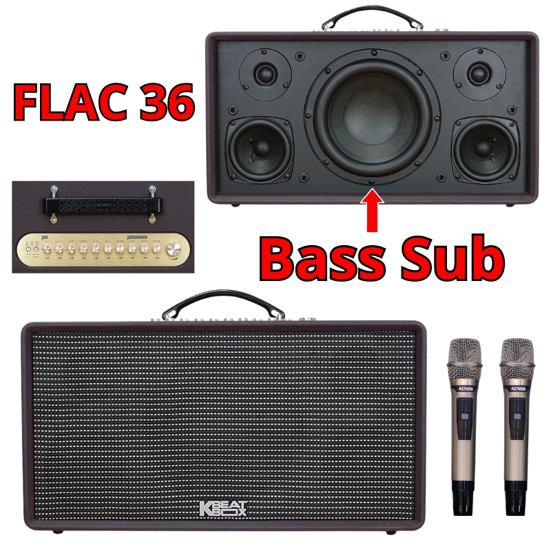 FLAC 36 được thiết kế mới lạ với cấu hình : 1 bass sub , 2 loa treble neo, 2 loa mid để có chất âm riêng biệt nhất. Bass sub mang lại tiếng bass xập xình, mạnh mẽ, giúp nghe nhạc hay chơi nhạc cũng tạo ra sự hứng thú nhất định. Loa Treble được sử dụng Treble từ Neo giúp cho