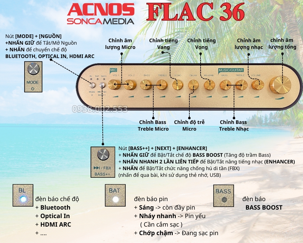FLAC 36 là dòng loa mới nhất của nhà Acnos được ra mắt vào Tết 2024, mang trong mình nhiều tính năng cải tiến, thiết kế mới nhất.