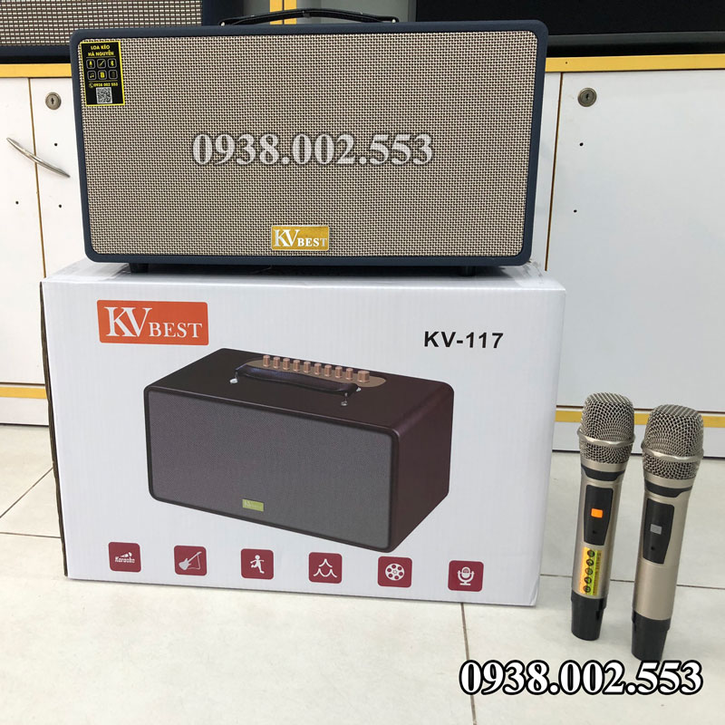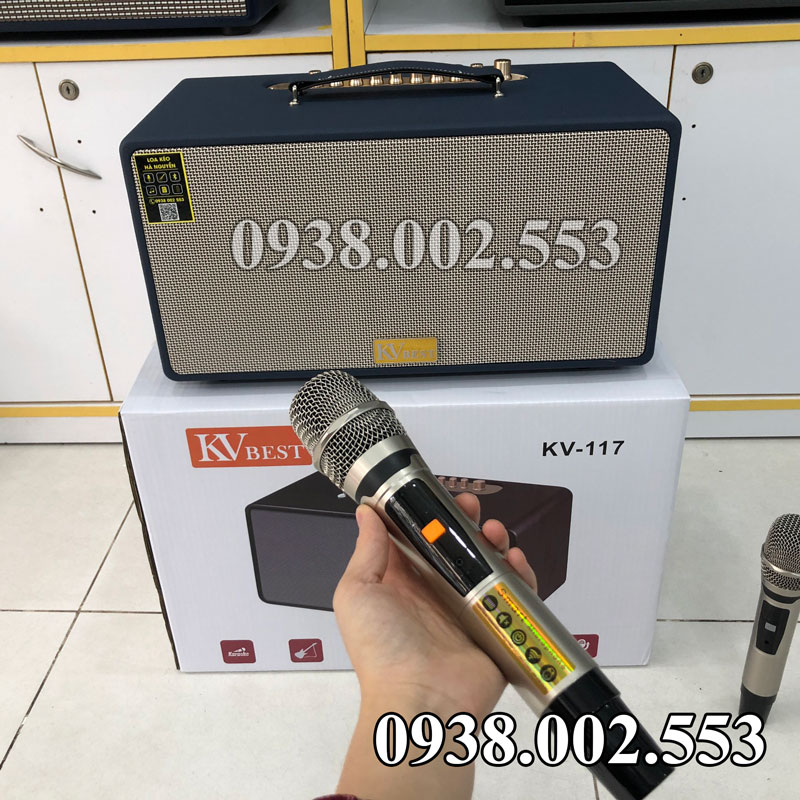 Mẫu loa karaoke xách tay thương hiệu loa KVBest KV-117 chính hãng mới ra mắt, với thiết kế nâng cấp, âm thanh bass sâu, chắc tiếng. Tặng 2 Micro không dây tần số UHF chỉnh được độ nhạy và set tần số không lo bị trùng tần số với những mẫu giống gần nhau khi sử dụng.. giá phải chăng. Bảo hành 12 tháng lỗi đổi mới 30 ngày tại 0938.002.553