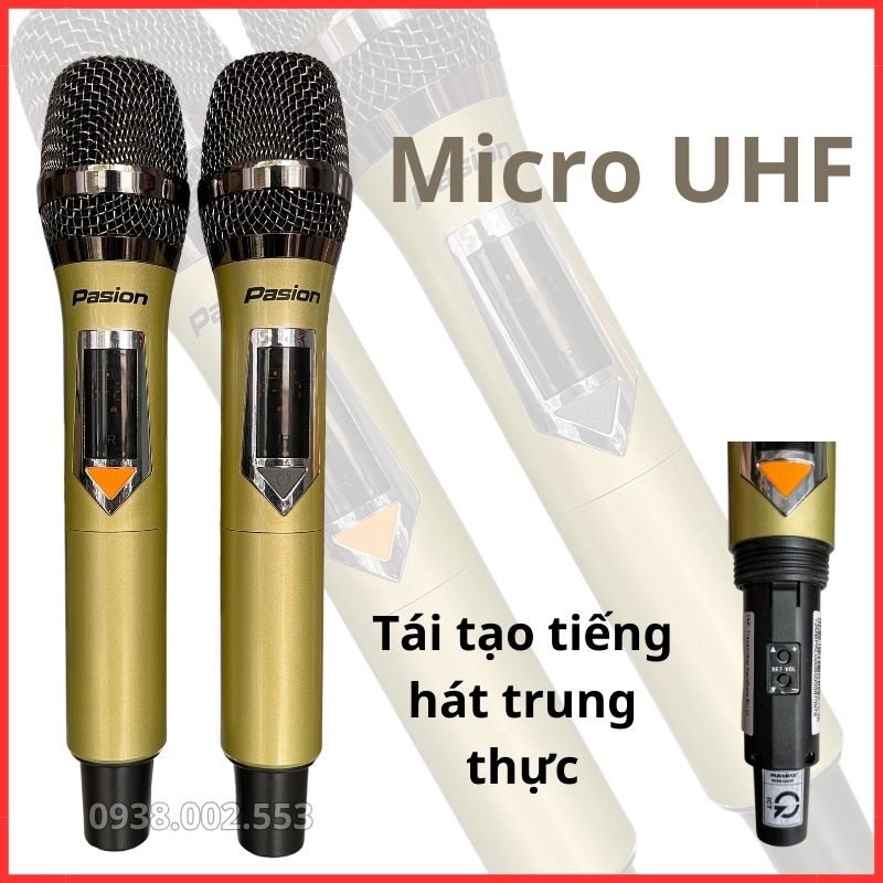 Micro của Pasion 2 được thiết kế bằng hợp kim nhôm cực kì chắc chắn, tạo ra độ đầm chắc khi cầm nắm và tạo ra phong thái chuyên nghiệp khi hát karaoke. Tấn số UHF chống hú cực tốt trên dòng loa Pasion 2 và khi hát karaoke nhẹ và hút, tái tạo âm thanh trung thực.