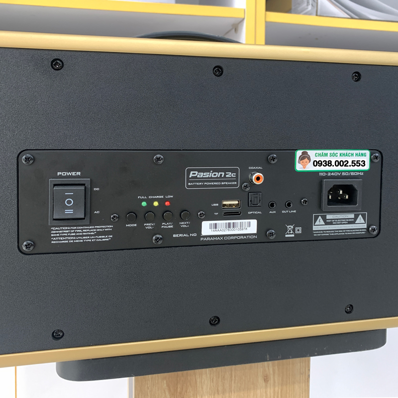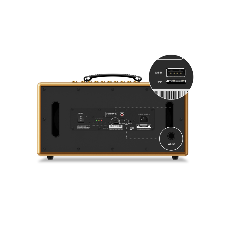 - Loa Karaoke Gia Đình Paramax Pasion 2C có công suất liên tục 100W và công suất đỉnh 400W, cho phép phát lại âm thanh ấn tượng với độ lớn và độ phủ không gian rộng. Với độ nhạy tín hiệu ngõ vào Mic/Guitar từ 20mV đến 60mV và độ nhạy tín hiệu ngõ vào Aux In lên tới 1.4V, bạn có thể kết nối các nguồn âm thanh khác nhau như micro, guitar hoặc thiết bị ngoại vi.
