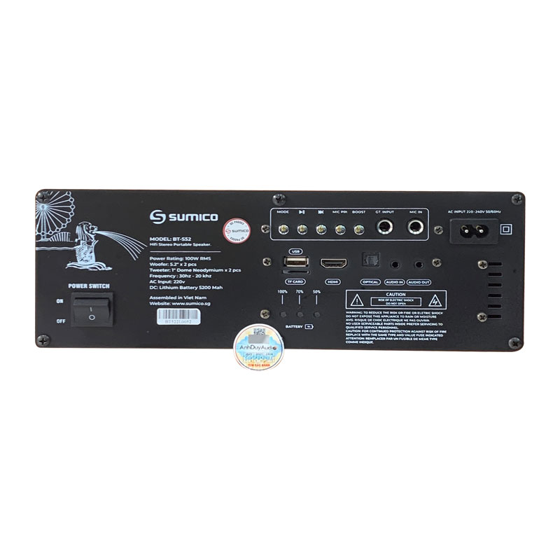 Loa Karaoke Xách Tay Sumico BT-S52 - Chính Hãng mới ra mắt của Sumico, được thiết kế với kiểu dáng nồi đồng cối đá chắc chắn đồng thời với tiêu chí hướng tới người sử dụng có yêu cầu cao về chất lượng âm thanh. Mang thiết kế độc đáo, màu sắc tươi trẻ kết hợp với công suất RMS 100W và Treble Neodymium cho ra chất âm hay nhất. Sumico BT-S52 - Chính Hãng dễ dàng đáp ứng khách hàng khó tính nhất, tạo bầu không khí tuyệt vời cho những buổi party cùng người thân cũng như tối ưu phục vụ tối đa nhu cầu giải trí trong nhà và ngoài trời.