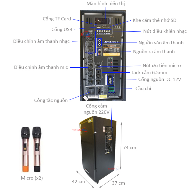 - Loa kéo hát karaoke di động Sansui có màn hình SA 2-212.