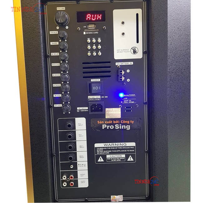 Bảng điều khiển được tích hợp ở mặt bên loa với bảng đèn led ở trung tâm, đi cùng các nút tinh chỉnh khi dùng ở chế độ USB, hay hệ thống điều chỉnh treble – bass cho loa và mic, cổng kết nối: jack 3,5 hay jack 6.5 cùng cổng sạc 220V, cổng đấu bình acquy 12V tạo nên một cái nhìn tổng quát nhưng khá hiện đại. Micro đi kèm loa kẹo kéo Prosing W-15A thuộc dòng mic không dây, sử dụng sóng cố định UHF cùng tần số tương thích với loa nên giúp việc ca hát trở nên đơn giản hơn bao giờ hết.