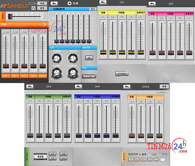 Điểm nhấn ở bộ sản phẩm Sansui SG10-15 là loa tích hợp bộ vang số tự động nhằm giúp bạn dễ dàng loại bỏ tạp âm cực tốt nhằm hỗ trợ âm thanh đầu ra vô cùng hay và trong trẻo hơn. Bạn có thể trực tiếp điều chỉnh âm nhạc từ trên bảng mạch, hoặc có thể sử dụng phần mềm Sansui SG10-15. Phần mềm này dành riêng cho các dòng loa kéo Sansui có tích hợp vang số, tương thích với cả hệ điều hành Android và iOS. Bạn có thể điều chỉnh nhạc ngay trên các thiết bị di động thông qua kết nối Bluetooth, đây là một trong những cải tiến vượt bậc ở dòng sản phẩm này. Đặc biệt, trên phần mềm của loa còn có chức năng tắt tiếng của ca sĩ.