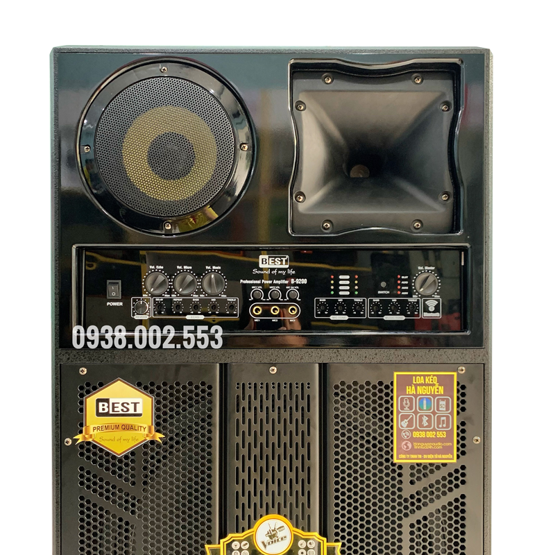 Loa Kéo Điện Karaoke Best B-9200 là dòng 4 Tấc Đôi dạng đứng cho ra trải nghiệm Karaoke chất lượng với cấu hình được tối ưu nhất mà Hà Nguyễn muốn giới thiệu đến Quý khách. Được trang bị với 2 Bass 40 cm (từ 190 - Coil 75), 1 Treble 450 và 1 Mid 16cm, sản phẩm này mang lại âm thanh cực lớn nhưng vẫn giữ cho mình được chất âm chi tiết và sống động. Nổi bật nhất so với sản phẩm khác của hãng, là được trang bị 1 Main liền vang với nhiều tính năng đặc biệt, giúp người dùng có thể tinh chỉnh âm thanh của nhạc và Micro một cách chuyên nghiệp giúp tối ưu trải nghiệm hát Karaoke của đại gia đình.