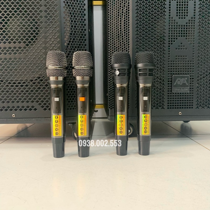 - Khi cầm trên tay Micro Không Dây ta sẽ thấy được vẻ đẹp micro với lớp sơn đen xám bóng bẩy, và cầm chắc tay. Kết hợp công nghệ UHF set tần số tiên tiến, giúp tránh tình trạng khó khăn khi mic trùng tần số.