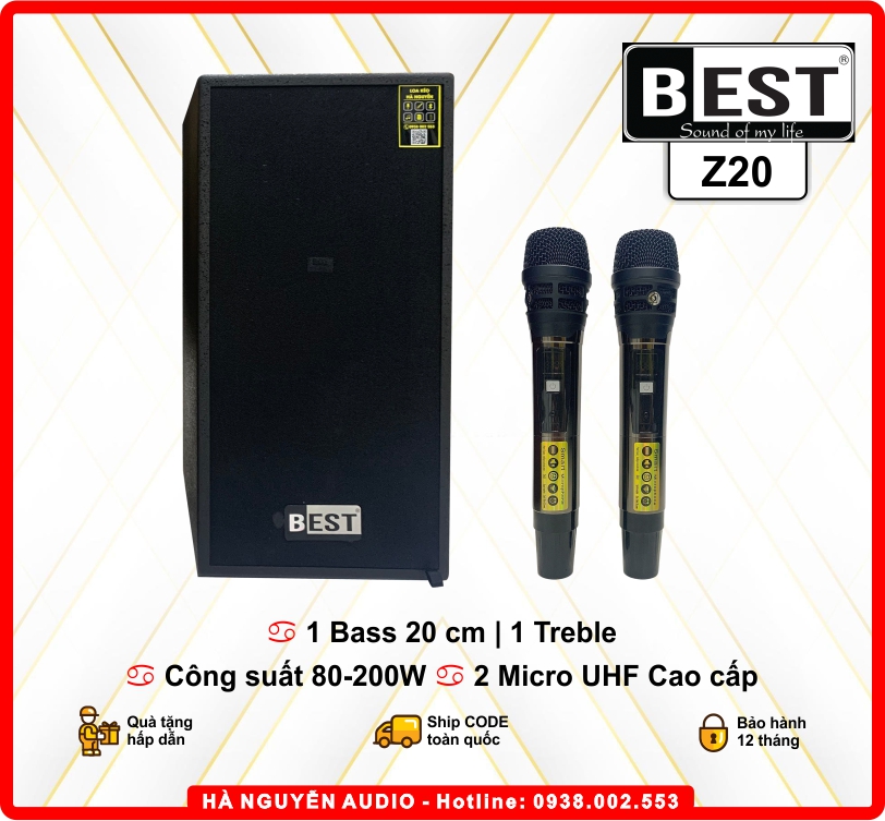 Ngoài ra, việc trang bị tính năng micro không dây tần số UHF cũng giúp loa kéo Best Z20 tiết kiệm thời gian và công sức khi cài đặt và sử dụng. Người dùng không cần phải lo lắng về việc cài đặt và kết nối dây cáp phức tạp, mà chỉ cần bật nguồn và sử dụng micro không dây để bắt đầu trình diễn giọng hát của mình.