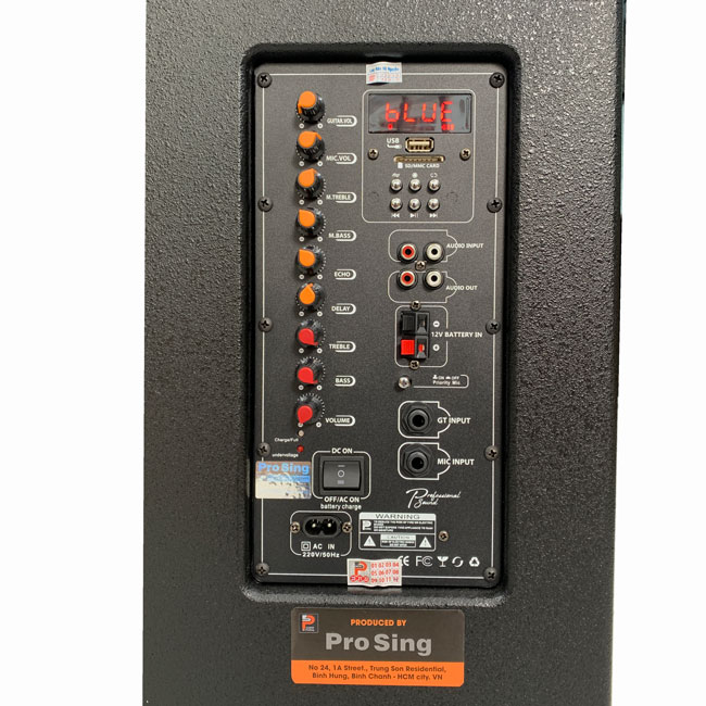 Bảng mạch của loa kéo di động Prosing W15 VN được bố trí ở bên hông với đầy đủ các nút chỉnh liên quan đến nhạc và micro cùng màn hình led hiển thị chế độ loa giúp cho việc căn chỉnh trở nên thuận tiện nhất mang lại trải nghiệm âm thanh tốt nhất dành cho bạn. Với một chiếc loa cao cấp thì việc tích hợp các ứng dụng phổ thông là một điều bắt buộc Prosing W15 VN dễ dàng kết nối với điện thoại, laptop, máy tính bảng… bằng công nghệ bluetooth 5.0 mới nhất hiện nay. Ngoài ra loa kéo chính hãng Prosing W15 VN cũng có thể dễ dàng kết nối với USB , thẻ nhớ SD một cách nhanh chóng và hiệu quả nhất giúp bạn không bị gián đoạn trong quá trình sử dụng.