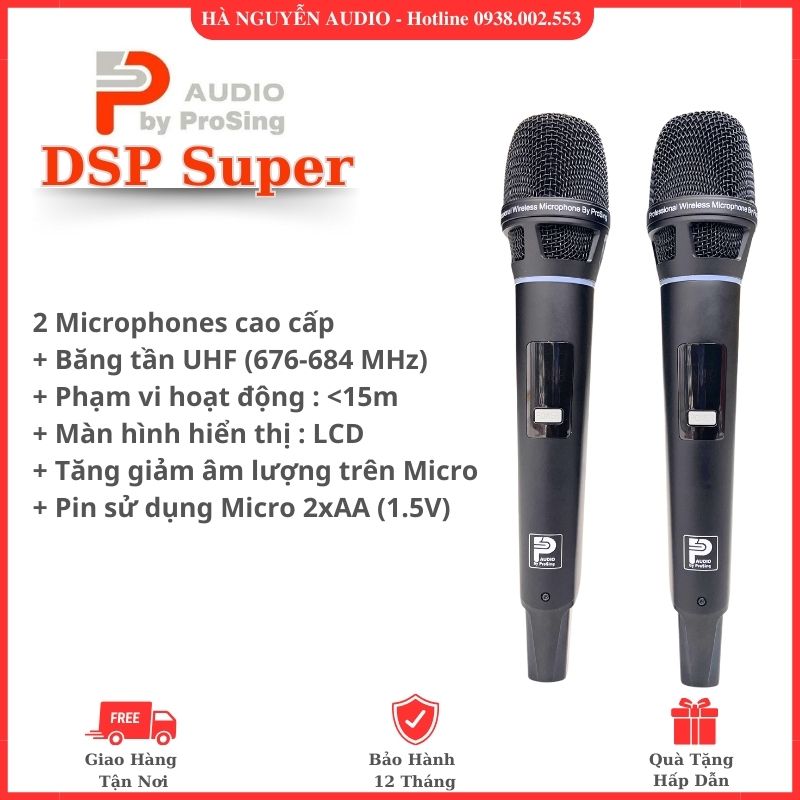 Micro của dòng loa kéo DSP SUPER có thiết kế mới, thay đổi mới, giúp cho việc sử dụng dễ dàng hơn, hát karaoke nhẹ và hút hơn. và đây cũng làmauxmicro mới nhất của hãng Loa Kéo Prosing sau nhiều năm có mặt ở thị trường tính cho đến thời điểm tháng 3/2024 này.