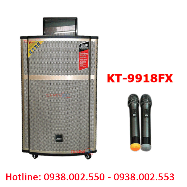 KT-9918FX hát karaoke cực hay như dàn karaoke chuyên nghiệp, dàn loa nghe nhạc cực chất, công cụ giải trí hiệu quả được nhiều người quan tâm lựa chọn. Bên cạnh chất lượng tốt, âm thanh hay loa kéo KT-9918FX tích hợp màn hình LCD 14 inch cùng khả năng điều khiển phần mềm karaoke từ điện thoại, cổng HDMI xuất hình ảnh, video, âm thanh nên đây hứa hẹn là siêu phẩm karaoke mang lại trải nghiệm âm thanh chân thực cho người dùng.