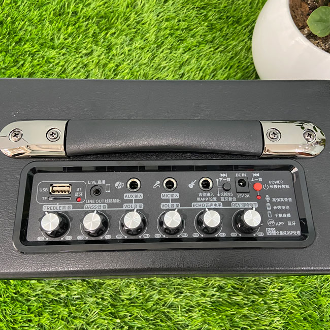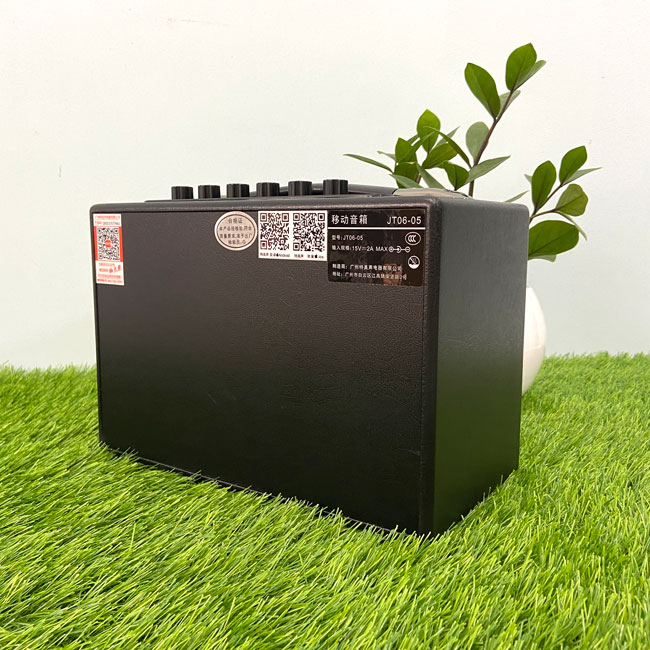 Đây là mẫu sản phẩm được nhiều người ưa thích bởi loa có kích thước nhỏ gọn cùng chất âm hay. Thùng loa kéo di động Temeisheng JT06-05 có thiết kế nhỏ gọn, được làm từ chất liệu gỗ tổng hợp có độ bền cao bên ngoài được bọc da với gam màu đen chủ đạo kết hợp hài hòa tạo điểm nhấn đồng thời làm cho sản phẩm trông sang trọng hơn. Mặt trước Temeisheng JT06-05 được trang bị màng lưới được làm bằng hợp kim rắn chắc bảo vệ bo mạch bên trong khỏi tác động bên ngoài. Màng lưới của loa kéo xách tay Temeisheng JT06-05 được thiết kế với kiểu lưới thưa ngăn bụi bẩn thâm nhập vào bên trong loa đồng thời âm thanh phát ra với chất lượng tốt nhất.