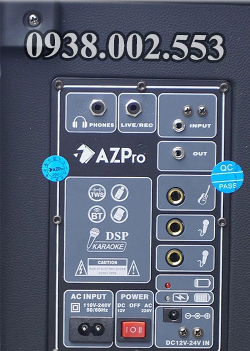- Chức năng chỉnh trên loa: 12 núm chỉnh gồm: Volume, Bass, Treble, Echo,Delay, Reverb G.vol...