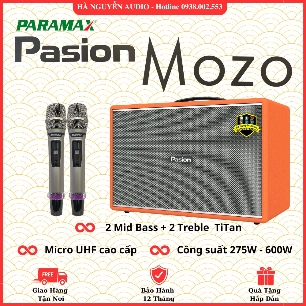 Pasion là thương con của Paramax chuyên về các dòng loa xách tay. Các Model của Pasion như: Pasion 2, Pasion 2c, Pasion Evo..v..v.. ra mắt đã được nhiều khách hàng quan tâm và đón nhận. Tiếp tục trong giữa năm 2025 Pasion tiếp tục cho ra mắt dòng MOZO kế thừa từ những đàn anh đi trước và mang trong mình những công nghệ tiên tiến và mới nhất.