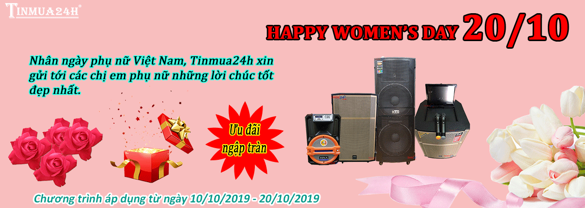 Nhân ngày Phụ Nữ Việt Nam 20/10 – Ngày tôn vinh nét đẹp người phụ nữ Việt Nam, Tinmua24h xin gửi những lời chúc sức khỏe, mọi sự như ý đến toàn thể Qúy khách hàng đặc biệt đến các bà, các mẹ và các chị em có một ngày lễ thật ý nghĩa. Cùng với đó, TINMUA24H đang có nhiều chương trình khuyến mãi vô cùng hấp dẫn và ý nghĩa dành tặng Qúy khách hàng Nữ khi mua loa kéo di động tại cửa hàng.