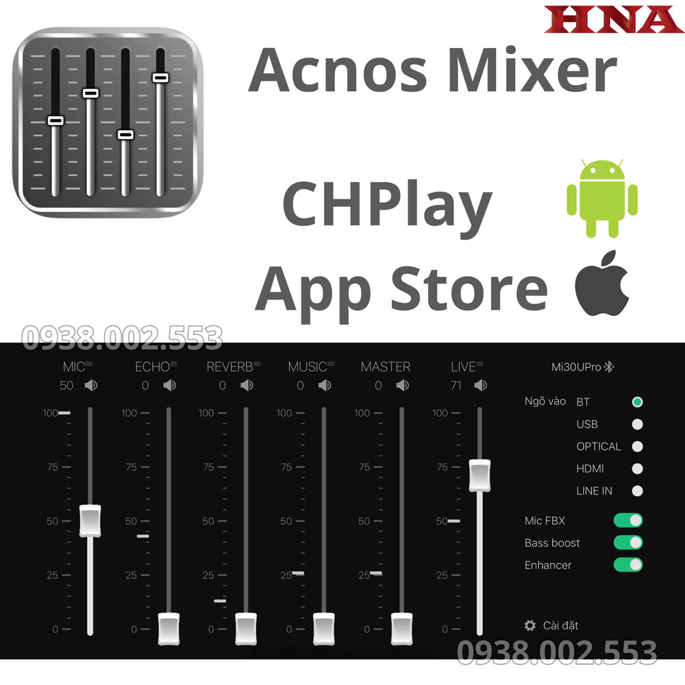 Mi30u Pro là mẫu vang số chỉnh cơ, hay còn gọi là mixer mi30u Pro được nâng cấp từ bán mi30u trước đây. micro được cải tiếng hơn, đầu micro được sử dụng củ mic chuyên nghiệp, nâng giọng hát hay hơn. Đặc biệt là có thể chỉnh micro riêng biệt cho từng Micro giống như micro cho nam và micro cho nữ. Phần các cổng kết nối của bộ vang số chỉnh cơ mi30u Pro cũng được cải tiếng nhiều. giúp người dùng có nhiều trải nghiệp hơn trên mẫu vang số của hãng Acnos này.
